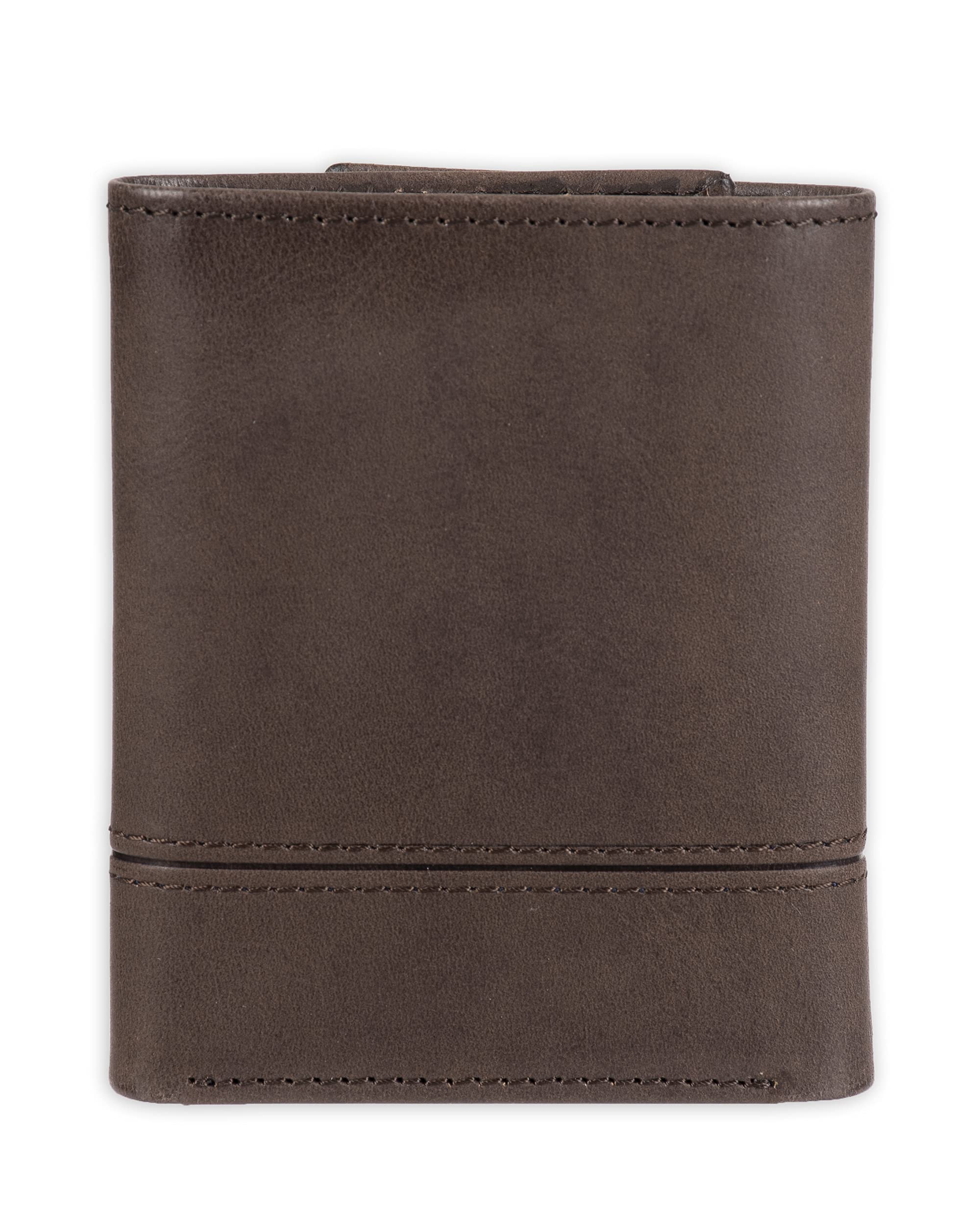 - 100% LEATHER: Haggar products are made of only the best materials. Namely, this trifold is made of genuine leather. It will look stunning and protect your most essential belongings in this sturdy fabrication.