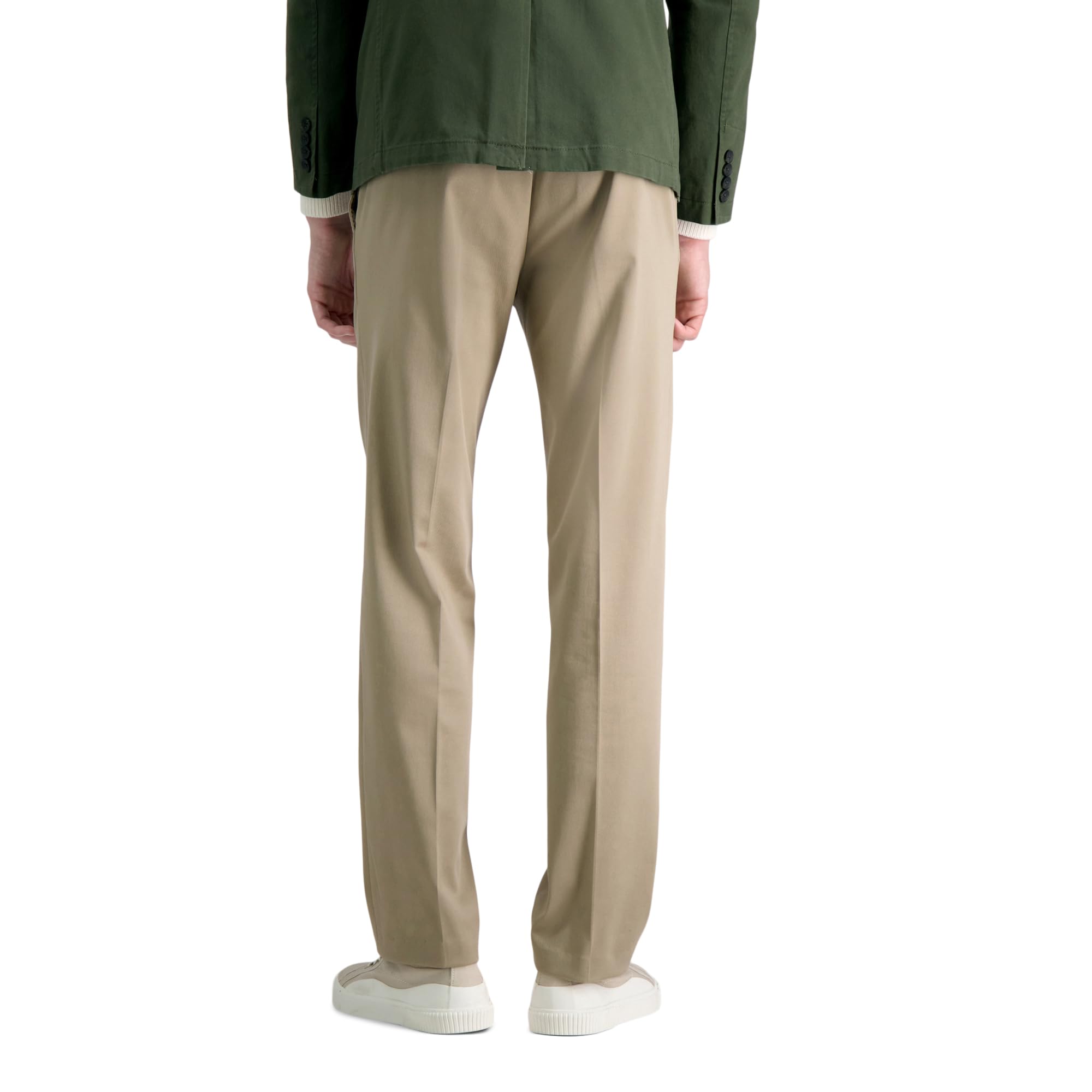 - PREMIUM NO IRON KHAKI: Featuring a flex waistband, flat front, offseam front pockets, single welt back pockets, blind hem in a straight fit silhouette.
